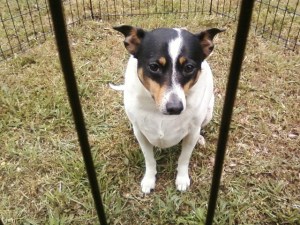 Remember I ordered the foldable pen made by Midwest Pets? It arrived a few days ago. Today we tried it out. It’s not too heavy or bulky. The panels are hinged together so it’s all one piece. It comes with eight stakes. Actually it’s supposed to come with eight stakes. Mine came with seven. But no matter, it’s a great item!