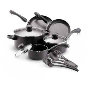 I bought a Farberware set for $44.00. It was on sale from $49.00 at Wal-Mart. I know, I know. It’s a cheap set. Well, it is Farberware and I’ll be cooking only for me so it won’t get much wear and tear.