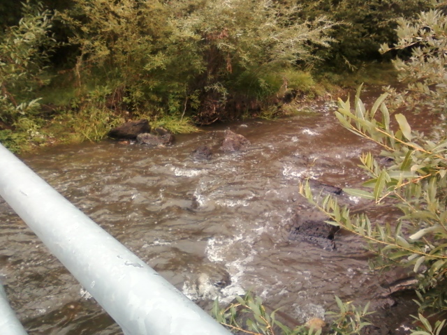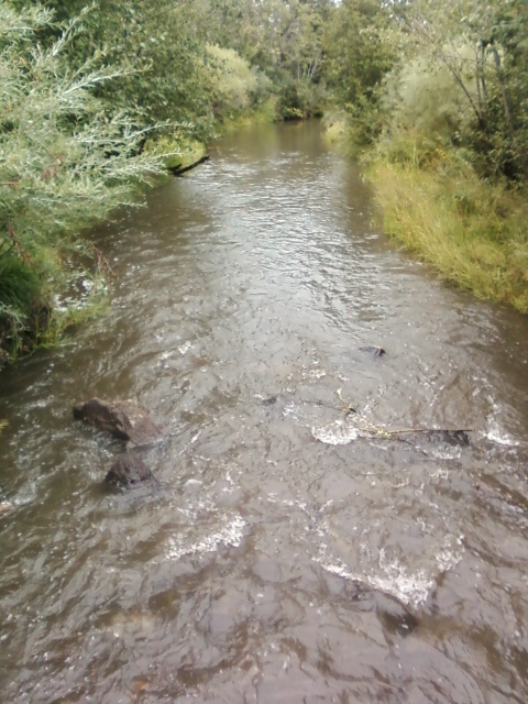 We follow the creek downstream to stand over it on a small bridge.