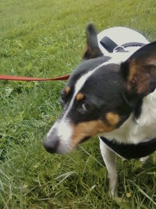 Bridget has become much better at avoiding the “I’ll go this way around the tree while you go around the other way” tangle of leashes.