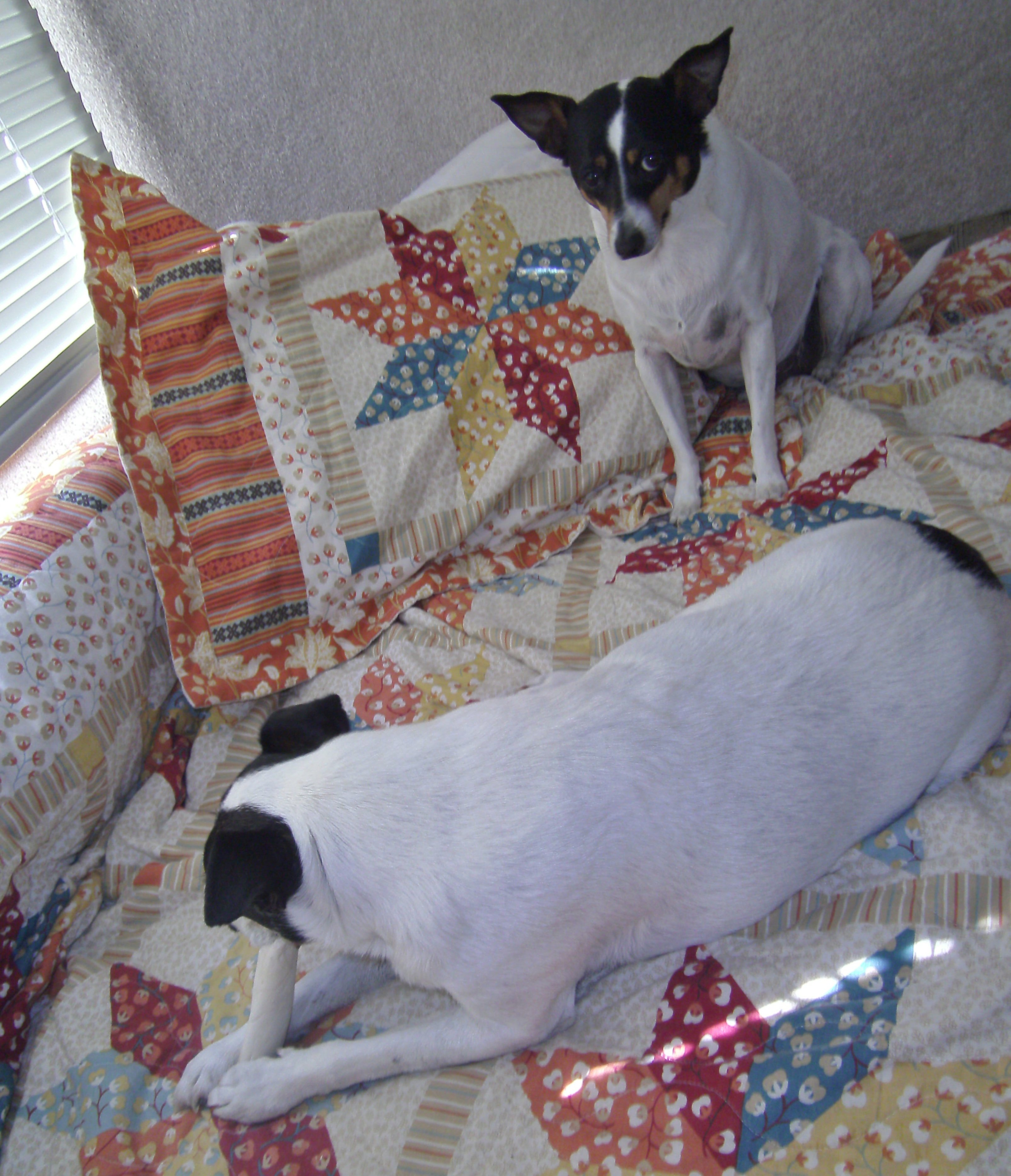 Spike wakes us up, Bridget sticks her sleepy head out from under the quilt, half-asleep, sweet and adorable . . . and Spike is so happy to start a new day, wagging his tail and trying to get us up . . . I’m sure your dog has his ways of putting a smile on your face, too.