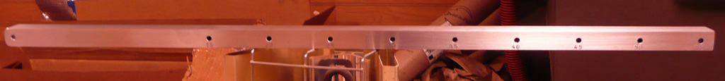 This is the adjustment strut for the mechanism that will tilt the solar panel at the correct angle to the sun. Notice the 15 - 55 degree markings on the strut.