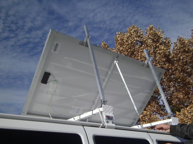 The white bar will be attached between opposite sides of the panel frame. The telescoping arm will swing down so the tip rests on the PTV's roof. It hasn't been painted yet.