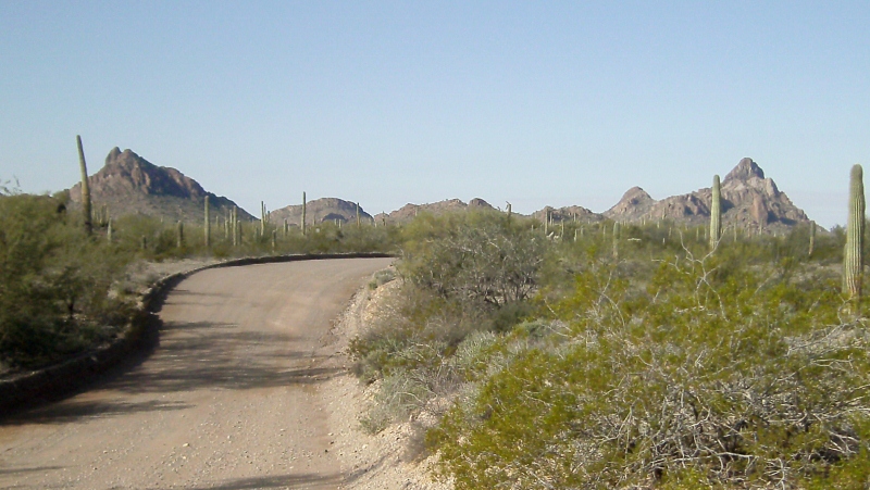 The crew and I drive into Ajo to dump our trash and fill our five one-gallon water jugs. There’s a trash bin conveniently located next to the 25-cents-a-gallon water dispenser. This is so easy.