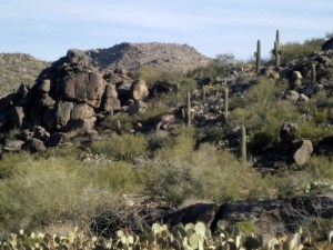 Yesterday a pick-up truck was parked near the huge boulders at the base of the mountain. I could hear repeated gunshots . . . someone shooting rattlesnakes in the rocks?
