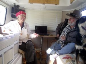 It is really amazing that you can have so much technology out there in the boonies mostly provided by your solar panels (right?). Just curious, what size of solar system you have for your Casita. I am assuming you have very energy efficient appliances as well. Fun to see you hosting your first get together with RV celebs Al, Kelly, the Pheebs and Gaelyn. Spike and the the Pheebs seemed to hit it off, kindred spirits.