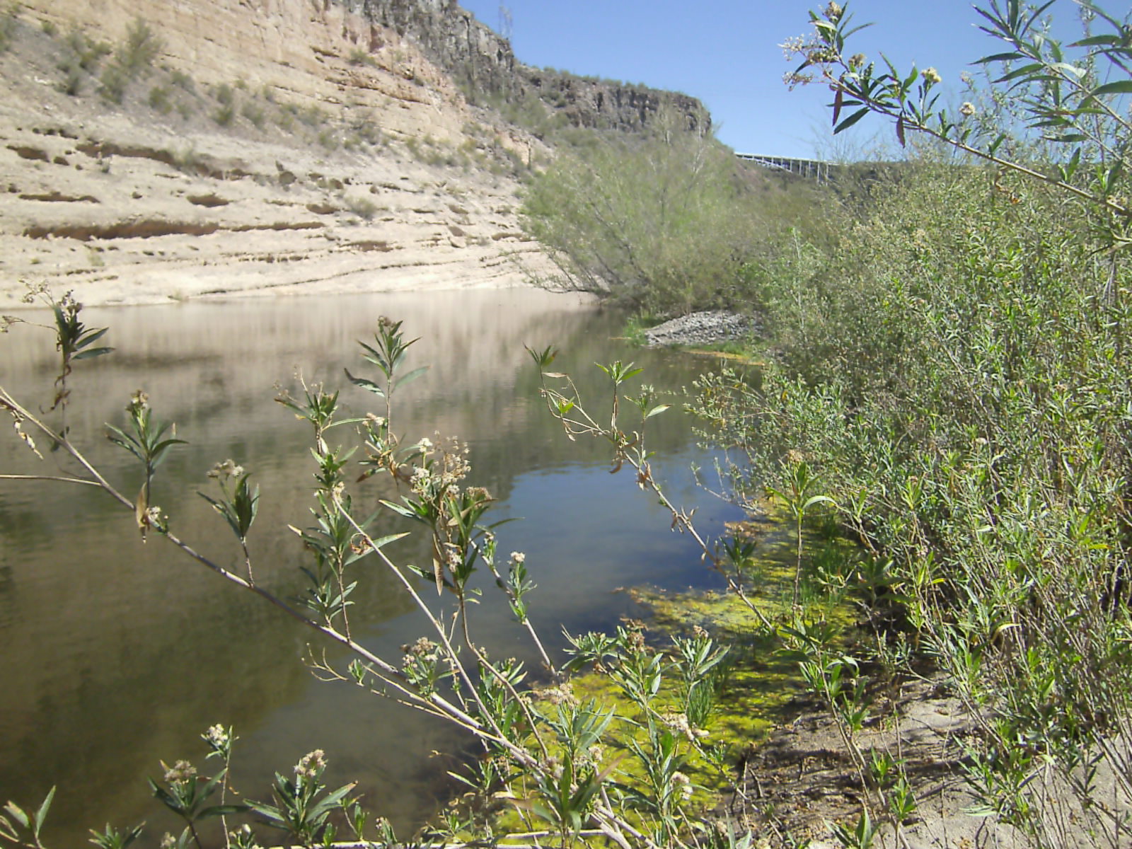Since it’s cooler today, I relax outside with the crew, read, sip iced tea, and watch the heron gliding to and from her nest. Cliff swallows swoop over the river, and pairs of raptors (?) play what I assume are love games high, high above the cliffs. A tiny yellow verdin hops from branch to branch of a palo verde next to our picnic table, picking up small insects with its tiny beak. My hummingbird feeder is a hub of activity.