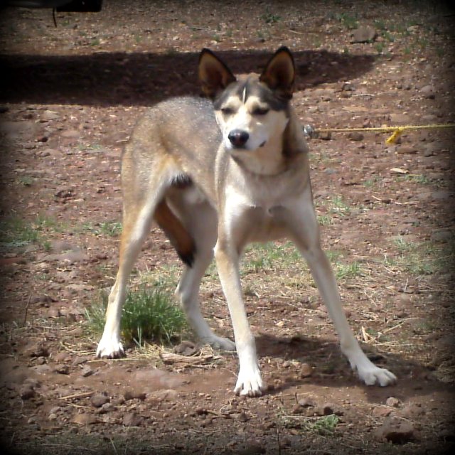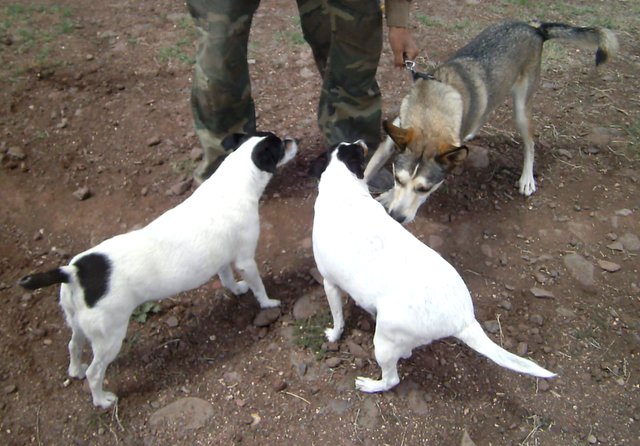 Rusty tells me that Timber is a mix of malamute, german shepherd, and shih tzu. Spike and Bridget hurry up to meet him. Bridget snarls when Timber tries to sniff her, and Spike hops around, yipping with excitement.