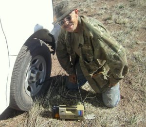 It starts to hum. In about four minutes, the tire is properly inflated. “Let me do the rest, Rusty, so I’ll be sure to know how to do it.”