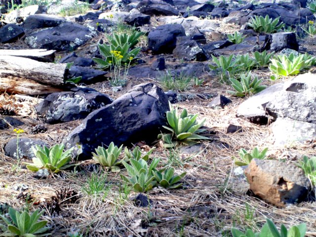 It’s at the top the slope on the other side of the road from our campsite. I let Spike lead the way over very rocky ground. He takes us far away from the camping area. I see numerous signs of deer and elk.