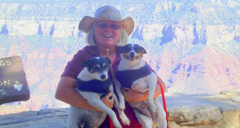 They respond with a few words . . . Scandinavian? Dutch? The man smiles and I hand him my digital camera. I scoop up Bridget and Spike and we strike a pose. (The photo was very bad. Believe it or not, this is the photoshopped version.)