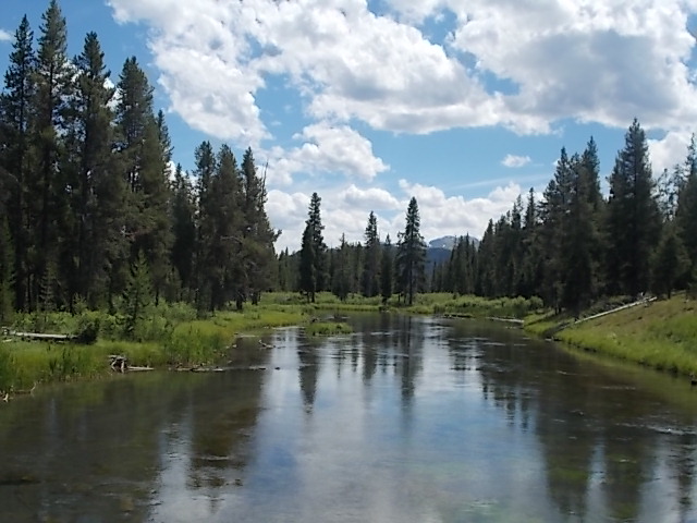 Good! Arrivederci, fella.’ Heh, heh. Now we have the place to ourselves. The crew and I laze away the day playing in the river, relaxing under our pine tree while I read a book, and walking the road along the meadow that borders the campground.