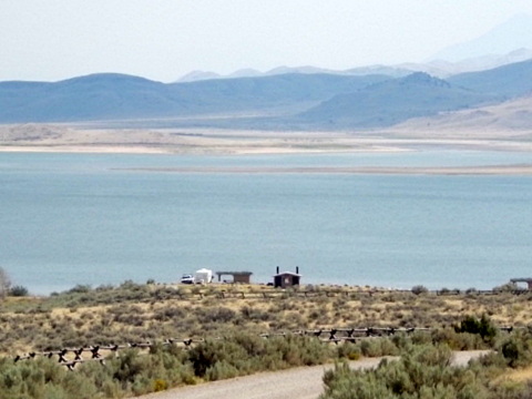 Apparently I drove past a lakeside campground on the other side of the dam. Then I remember. Armistead Campground. Bureau of Reclamation. This will be good. Driving in, I notice the lakefront sites have very large shelters over picnic tables. I drive the loops looking for an empty site. Darn, it’s full. I see a guy sitting under a shelter reading. I stop the PTV and get out. “Hi! Excuse me! How much is it to stay here?”