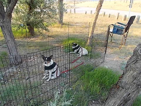 In the morning I’m going to keep an eye on those lakeside sites. As soon as someone leaves a site, rvsue and her canine crew are pouncing on it!