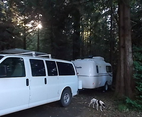 Spike was happy trotting around the campground alongside Bridget on her wheels. He hasn’t gotten that kind of exercise since The Tragic Incident.