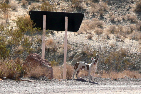 Homeless dog waits