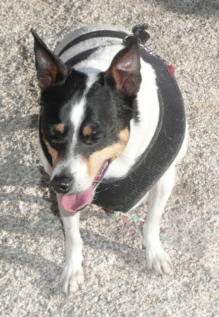Bridget rests during our search for Spike in the desert.