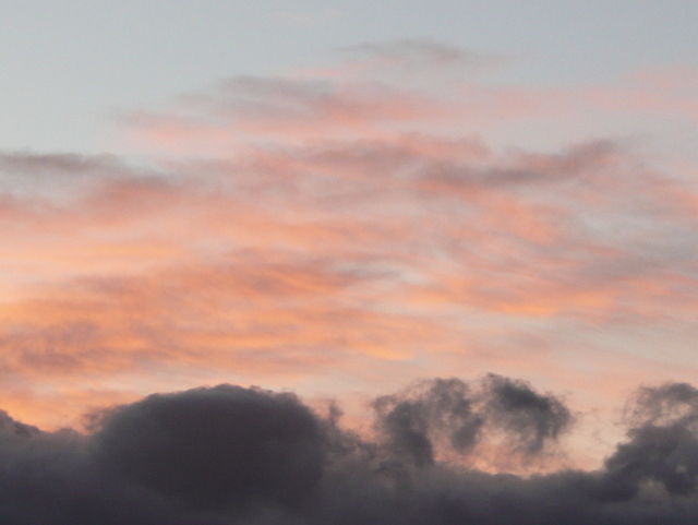 Our home below pink clouds