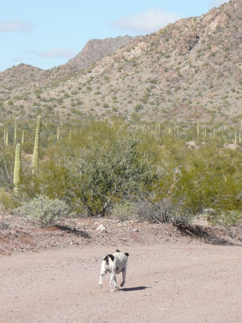 I can’t let him go off by himself due to the threat of coyotes. I can’t call him because he doesn’t hear me anymore. Instead we have this new routine of him patrolling the desert, sometimes in a sprint, while I chase in my bedclothes a few yards behind him.