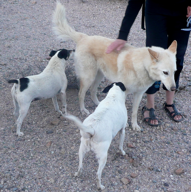 The crew make Lucha’s acquaintance in typical canine fashion. She’s a bit shy, but who wouldn’t be with Bridget and Spike nosing around like they do!