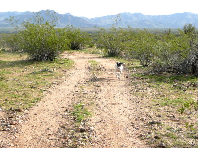 I want to check another watering hole. As we approach I see some movement through the palo verde and mesquite. What is that? Something is over there! I quickly glance around for the crew. Spike is dawdling.
