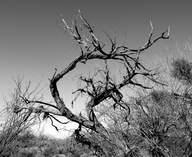 Those photos are mine. The bird photos were taken at a pull-out along the road as I was driving from Ajo to Gila Bend. The sunrise was this morning out our front door. The car was at Darby Well Road, Ajo. And the gnarly tree was taken here on one of our walks.