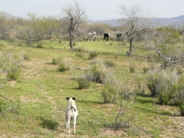 Hahaha… I love those dogs. Spike on Patrol!!!! I wondered how he was managing those cows. They will likely be happy to see him move on, they can have their favorite tree back.