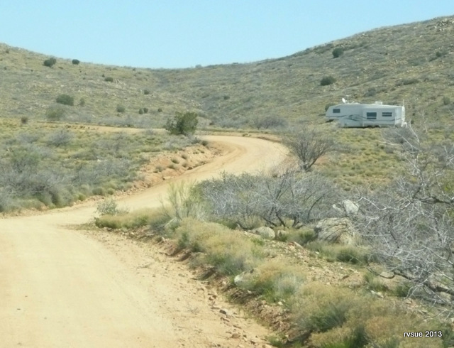 Hello Sue, We were Thinking of heading in that direction come Monday, April fools day. I have been checking the weather for the next 2 weeks and down there looks good for the late winter storm that’s coming. We’ve looked at the area by driving down the “Black Canyon Back road #58”. It’s ruff from Cordes to the pavement thru Bumble Bee, We came thru Spring Valley from where we are now at road 680 near Drake, off Hwy 89. We’d rather be in sand than mud and be ’bout 45 miles from Prescott up Hwy 69. There’s a convince store in Spring Valley and the closest gas station is ether at the junction of Hwy’s of 17- 69 or north to Meyer, 10 or so miles. How’s the crew doing? Oh yah, Have A Happy Ester or Passover, He Has Risen , Amen and Thank You Lord for your Gift of Life. Timber sess hi……………………….