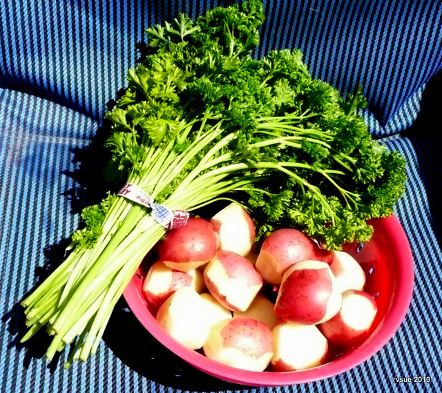 Your fresh produce looks yummy. I love parsley, Yesterday I planted a whole square of it in my square foot garden.
