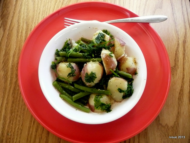 Later I boil the potatoes with the green beans and right before they’re done, I use a pair of scissors to cut the parsley into the pot.