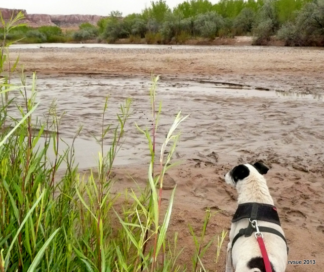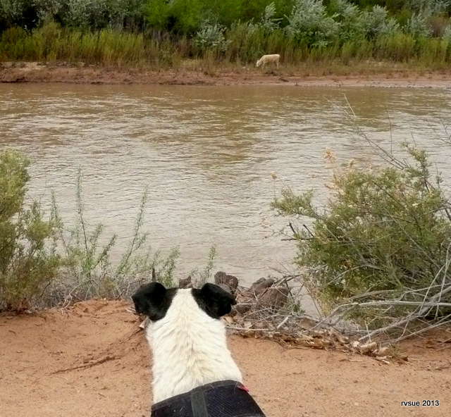 Ever-vigilant Spike warns a lone bovine to stay on the other side of the San Juan.