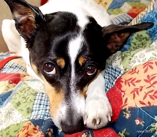 He gives me the cutest face with bright eyes before settling into the covers. (This is an old photo, one of the few that captures his happy, impish look.) In about a minute he’s snoring. What a guy!