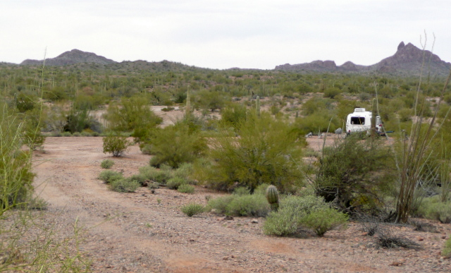Down the lane we go and find that Jeff and Glenda are sitting outside their Casita. We stop for a visit. My plan is to take the lane down to the wide, dirt road and follow the road at a steady, brisk pace for some sustained exercise. No stopping for sniffs and photos. Oh no, a good, invigorating, heart-pumping jaunt is what we need.
